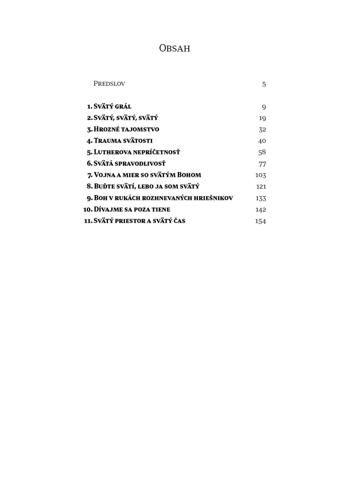 Toto dielo nás upúta tromi vecami. Autorovým intelektuálnym rozhľadom, schopnosťou vyučovať a samotnou metódou rozprávania. Tá zodpovedá vyznaniu žalmistu (Žalm 113:6), v ktorom je koncentrovaná celá biblická teológia: Boh sídli vysoko a hľadí dolu hlboko. Sproul nenazerá na Božiu svätosť „samu osebe“ ako na špekulatívny fakt, ale vždy vo väzbe k tomu, čo skúsenosť Božej svätosti znamenala pre život konkrétnych ľudí z biblickej minulosti, z dejín cirkvi. Takú skúsenosť môžete mať aj vy.