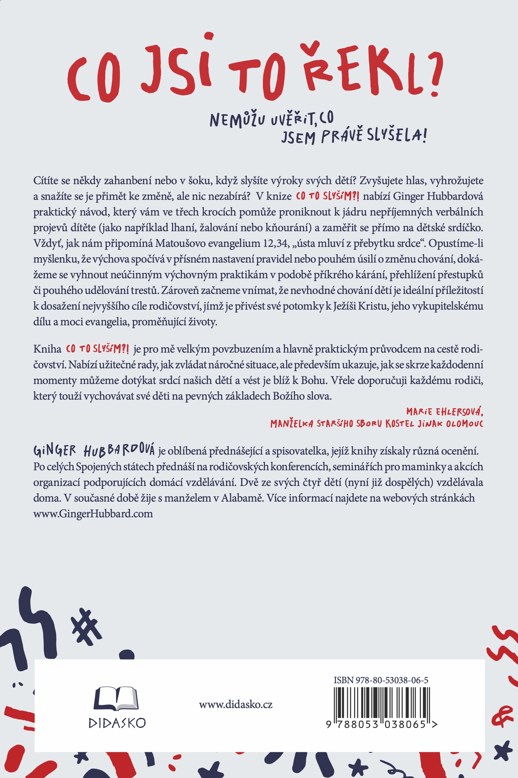 V knize „Co to slyším?!“ nabízí Ginger Hubbardová praktický návod, který vám ve třech krocích pomůže proniknout k jádru nepříjemných verbálních projevů dítěte (jako například lhaní, žalování nebo kňourání) a zaměřit se přímo na dětské srdíčko. Vždyť, jak nám připomíná Matoušovo evangelium 12,34, „ústa mluví z přebytku srdce“.