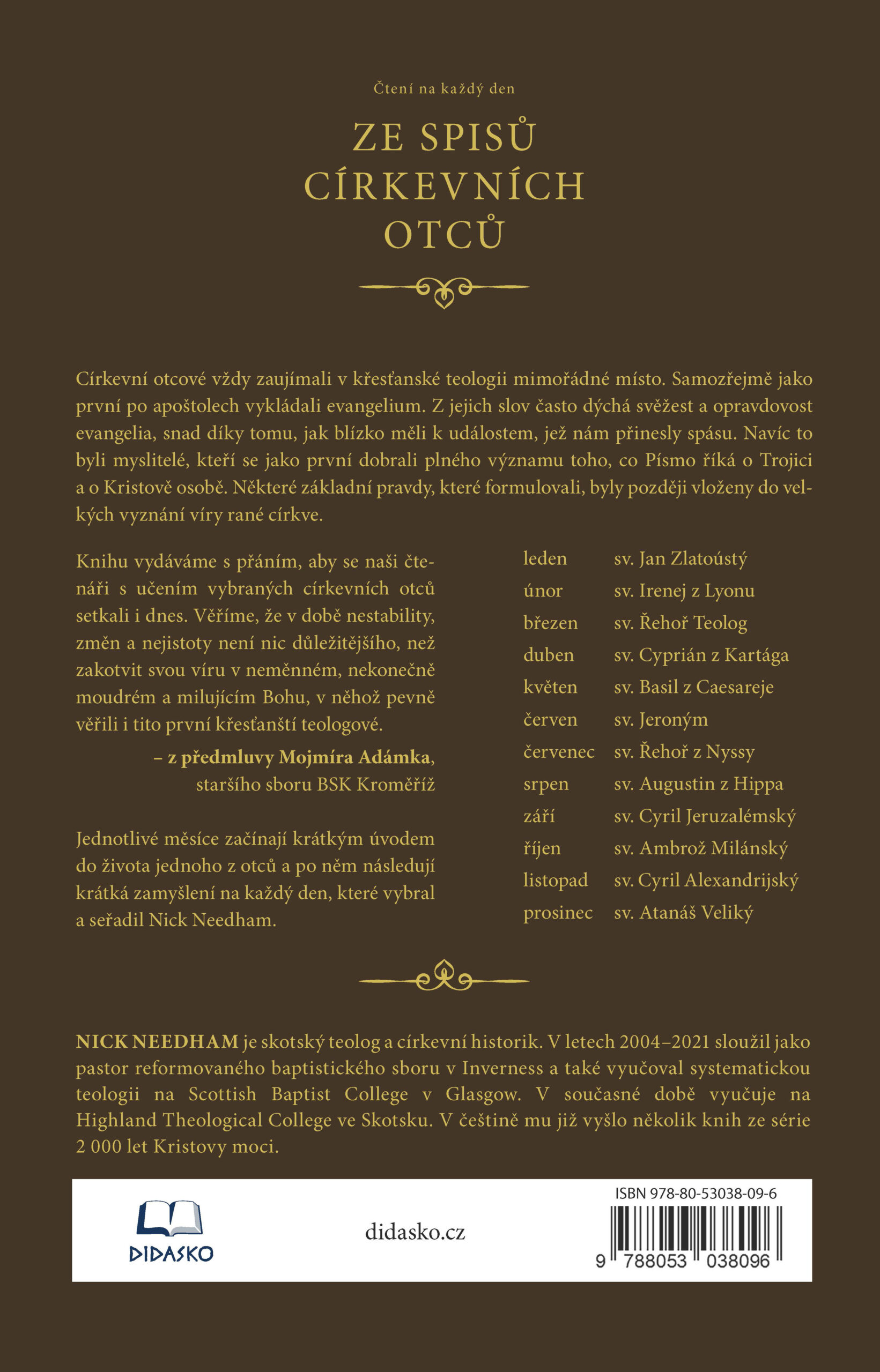Jednotlivé měsíce začínají krátkým úvodem do života jednoho z otců a po něm následují krátká zamyšlení na každý den, které vybral a seřadil Nick Needham.