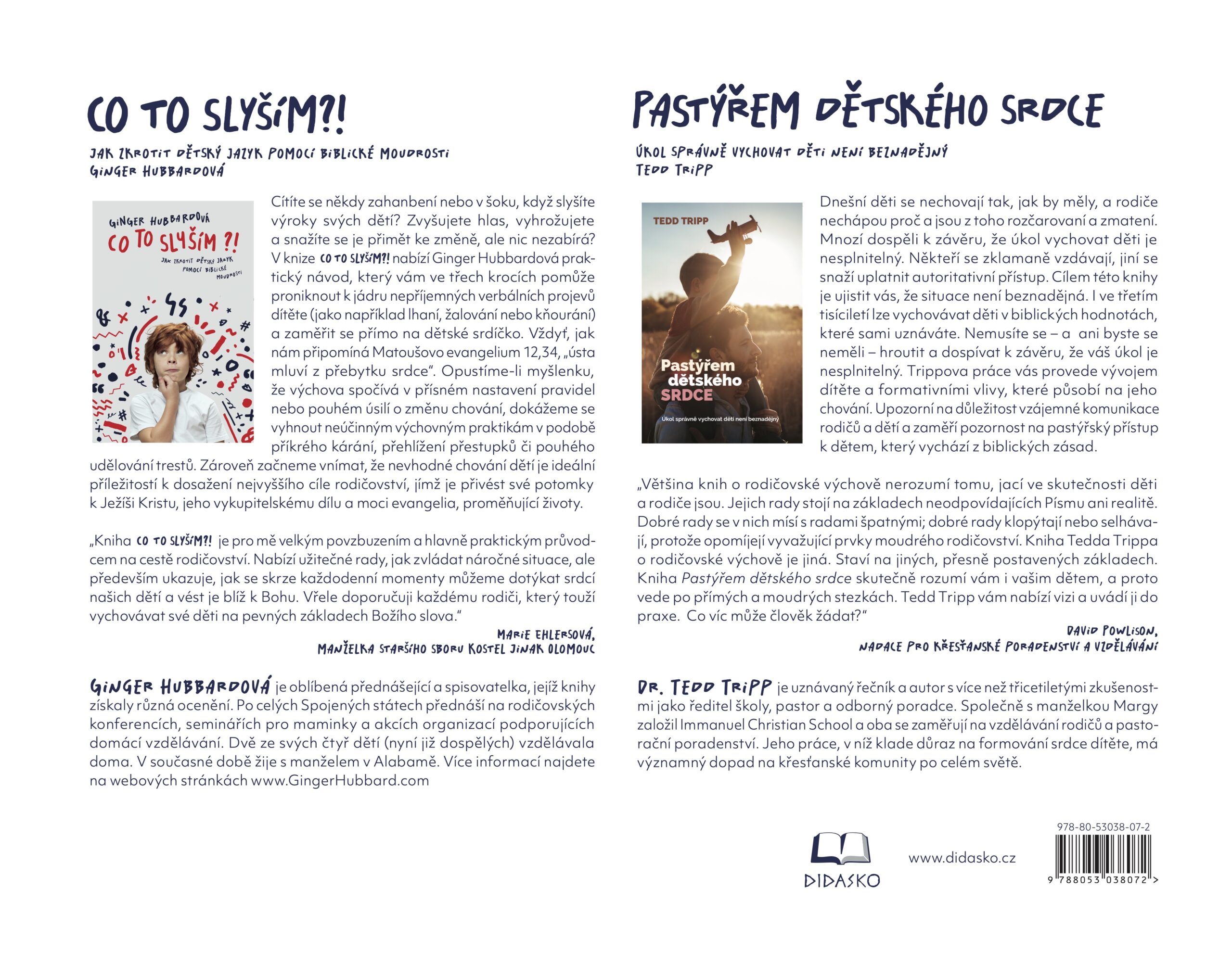 Ginger Hubbardová v ní seřadila nejčastější výchovné situace i běžné dětské reakce a doplnila je o biblické texty, které budou o daném problému promlouvat k srdci vašich dětí z perspektivy Božího slova. Publikace je ve formátu kalendáře, aby ji bylo možné pověsit na zeď a mít tak moudrá slova Písma stále na očích.