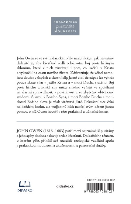 John Owen (1616–1683) patří mezi nejznámější puritány a jeho spisy dodnes oslovují srdce křesťanů. Do každého tématu, o kterém píše, přináší své rozsáhlé teologické vzdělání spolu s praktickou moudrostí a zkušenostmi z pastorační služby.